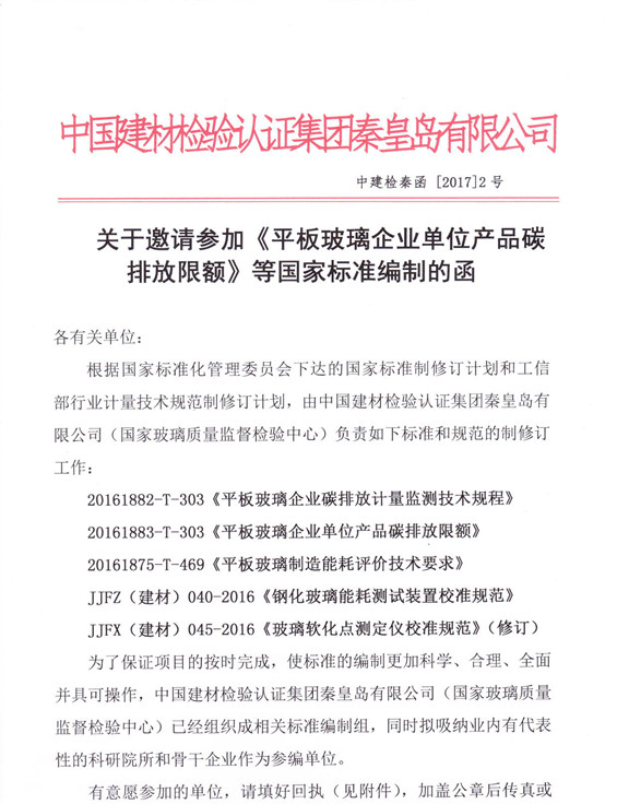 平板玻璃企業(yè)單位產(chǎn)品碳排放限額等國家標準征集參編單位